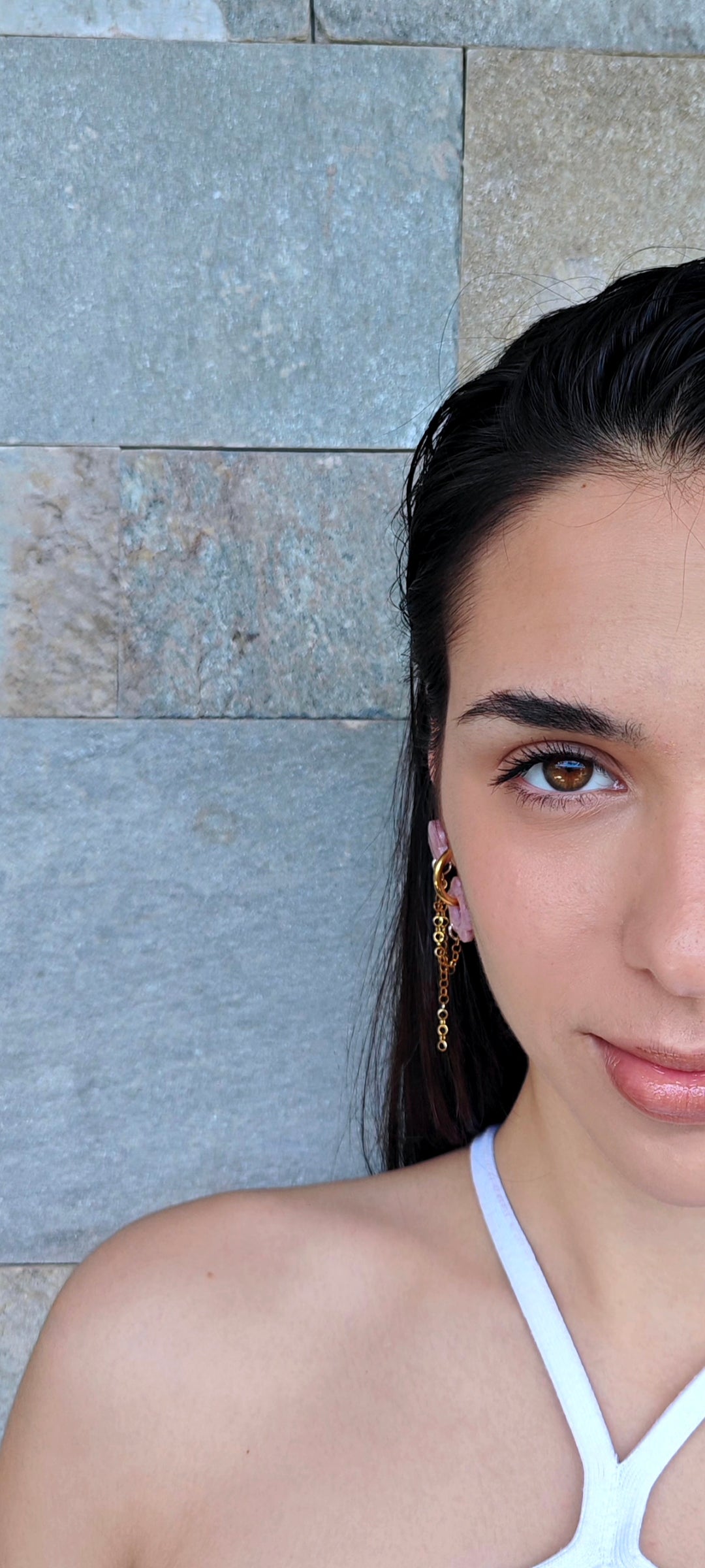 Χειροποίητα σκουλαρίκια από πολυμερικό πηλό και υγρό γυαλί σε σχήμα λουλουδιού.