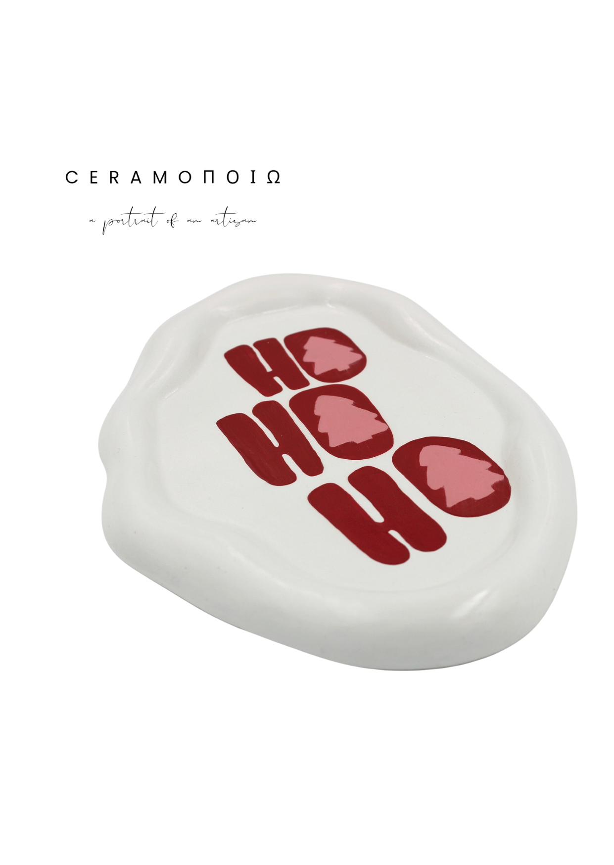 Ακανόνιστο οβάλ tray/ θήκη από σκόνη πορσελάνης και ζωγραφισμένο χριστουγεννιάτικο ho-ho-ho.