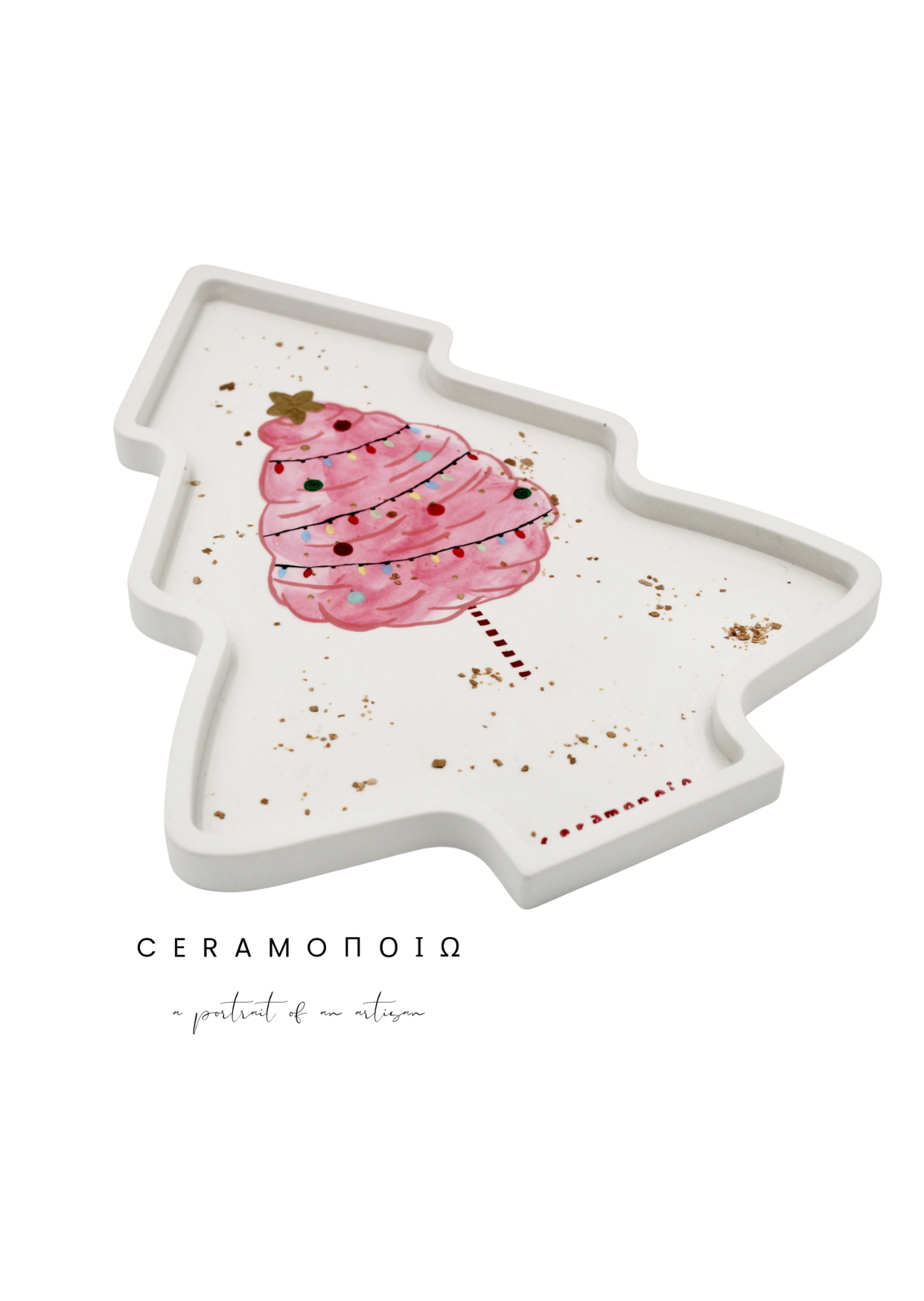 Διακοσμητική θήκη/ tray σε σχήμα Χριστουγεννιάτικου Δέντρου με ζωγραφισμένο στο χέρι μαλλί της γριάς στολισμένο σαν δέντρο Χριστουγέννων.